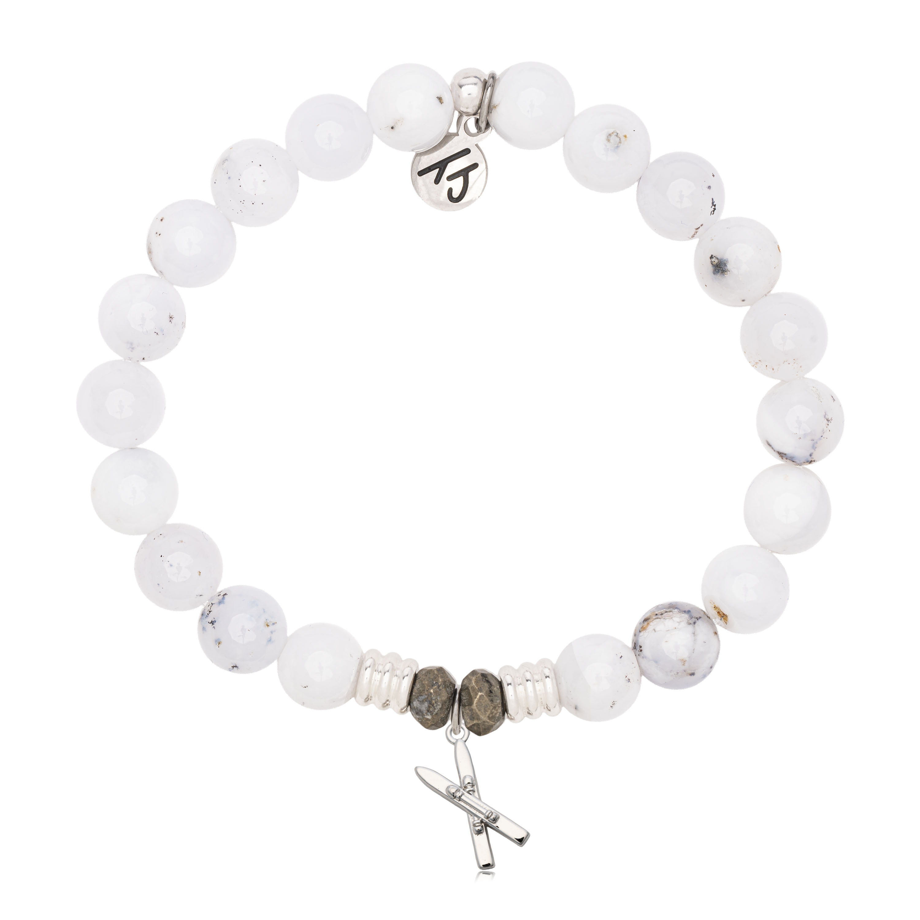 (724) 758-3248White Chalcedony Agate Bracelet With Sterling Silver Ski Charm