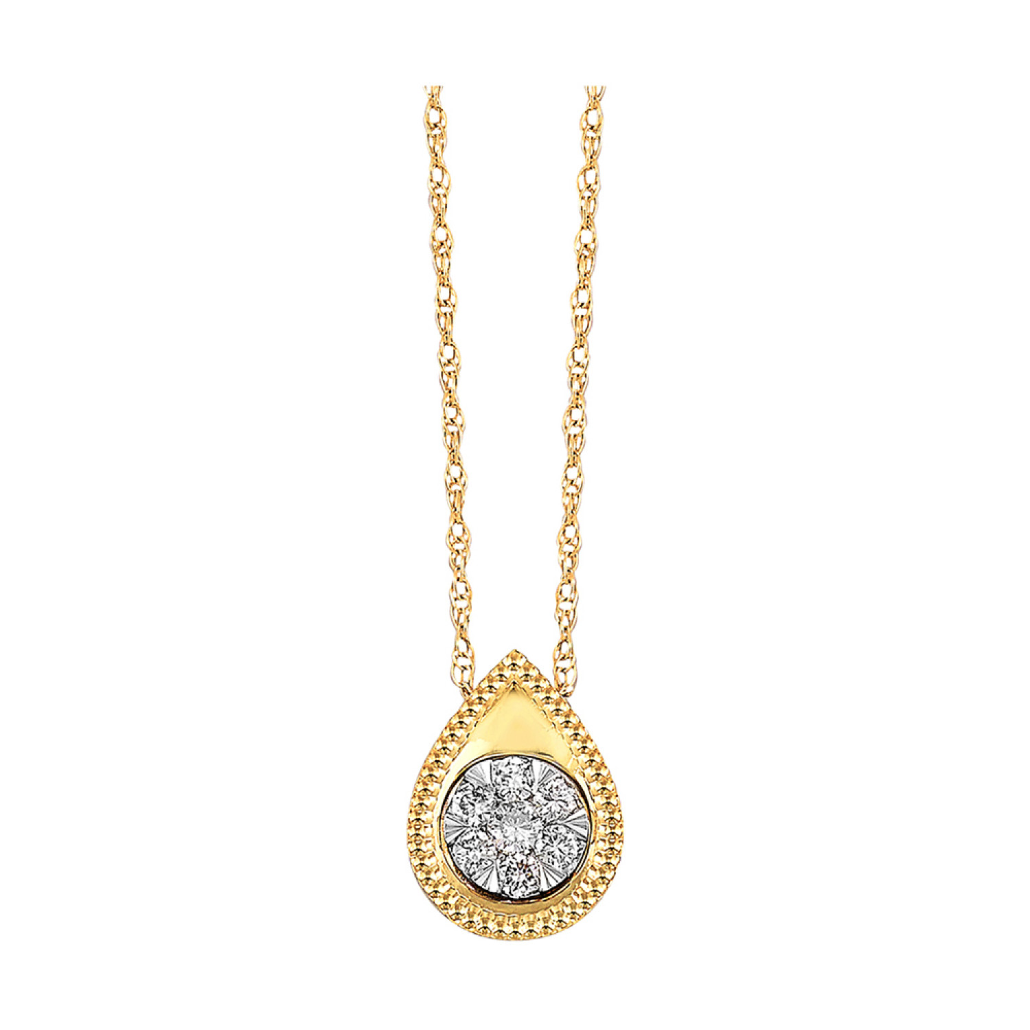 (724) 758-324814K Yellow Gold Tear Drop with 1/10ctw Diamond Cluster Necklace, 18"