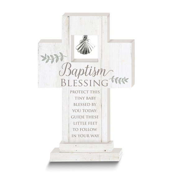 (724) 758-3248Baptism Blessing 6"" Standing Cross with Shell Charm Gift Boxed
