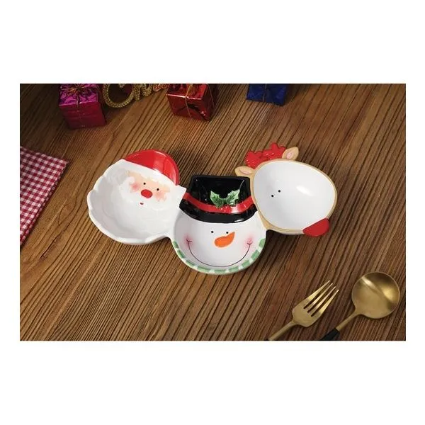 (724) 758-3248"Santa, Snowman and Reindeer Three Section Ceramic Server Tray"