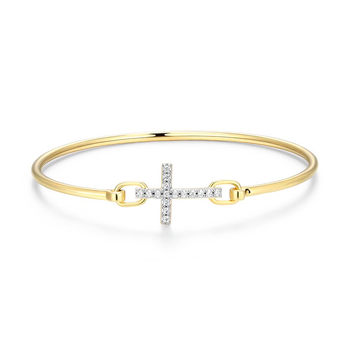 (724) 758-3248Cross Lab-Created Diamond Flex Bangle in 14K Yellow Gold-Plated Sterling Silver, 1/6ctw, G-H, SI, Inner Diameter 60x50mm