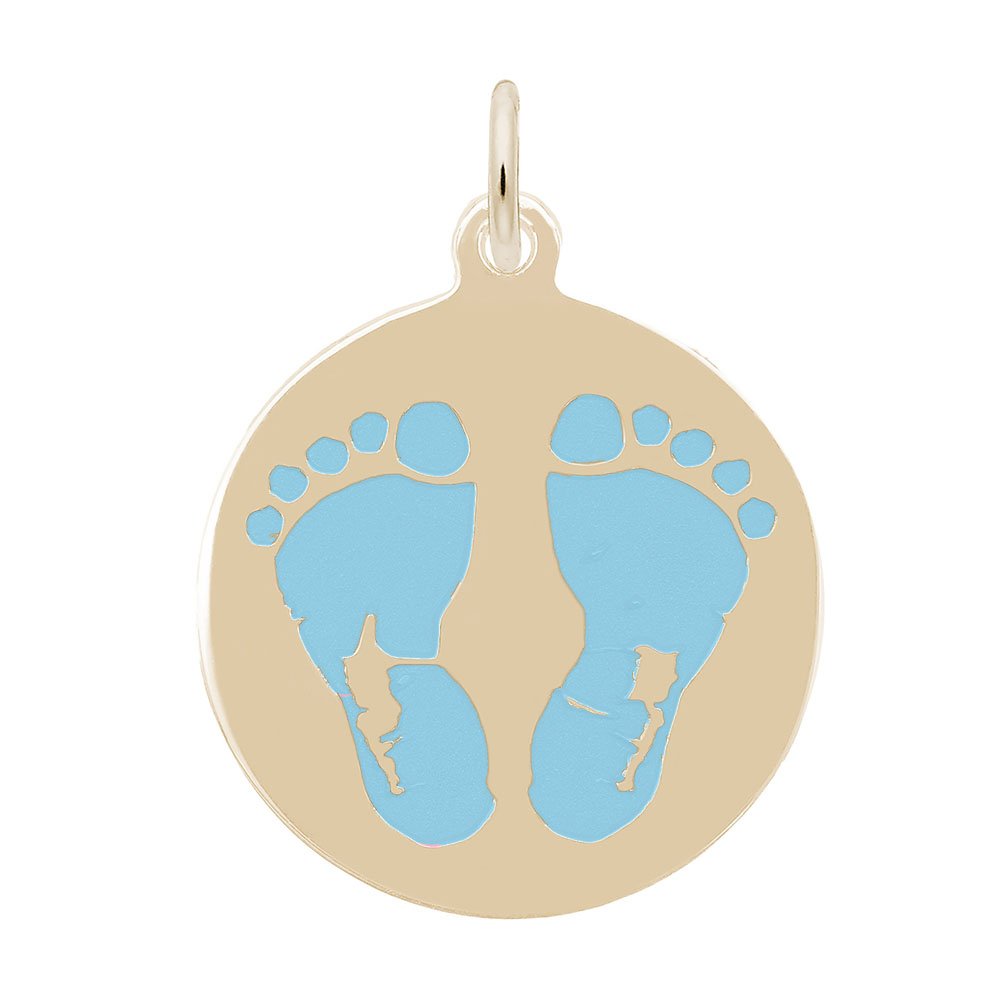(724) 758-3248Gold Plated Blue Painted Baby Feet Disc Charm