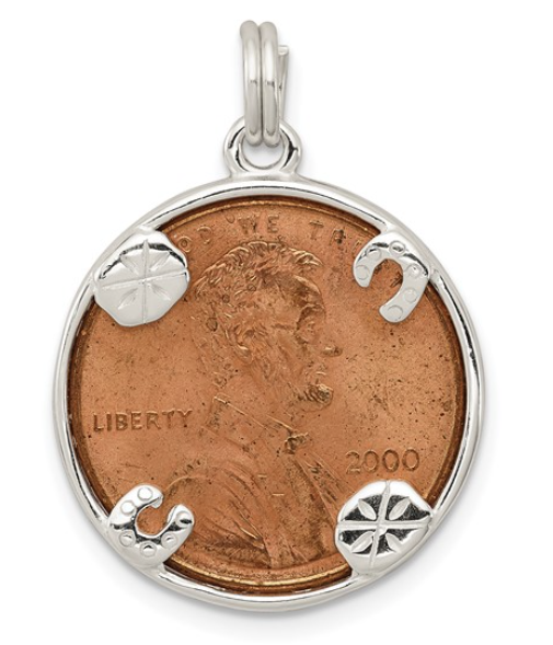Sterling Silver Rhodium-plated Penny Charm